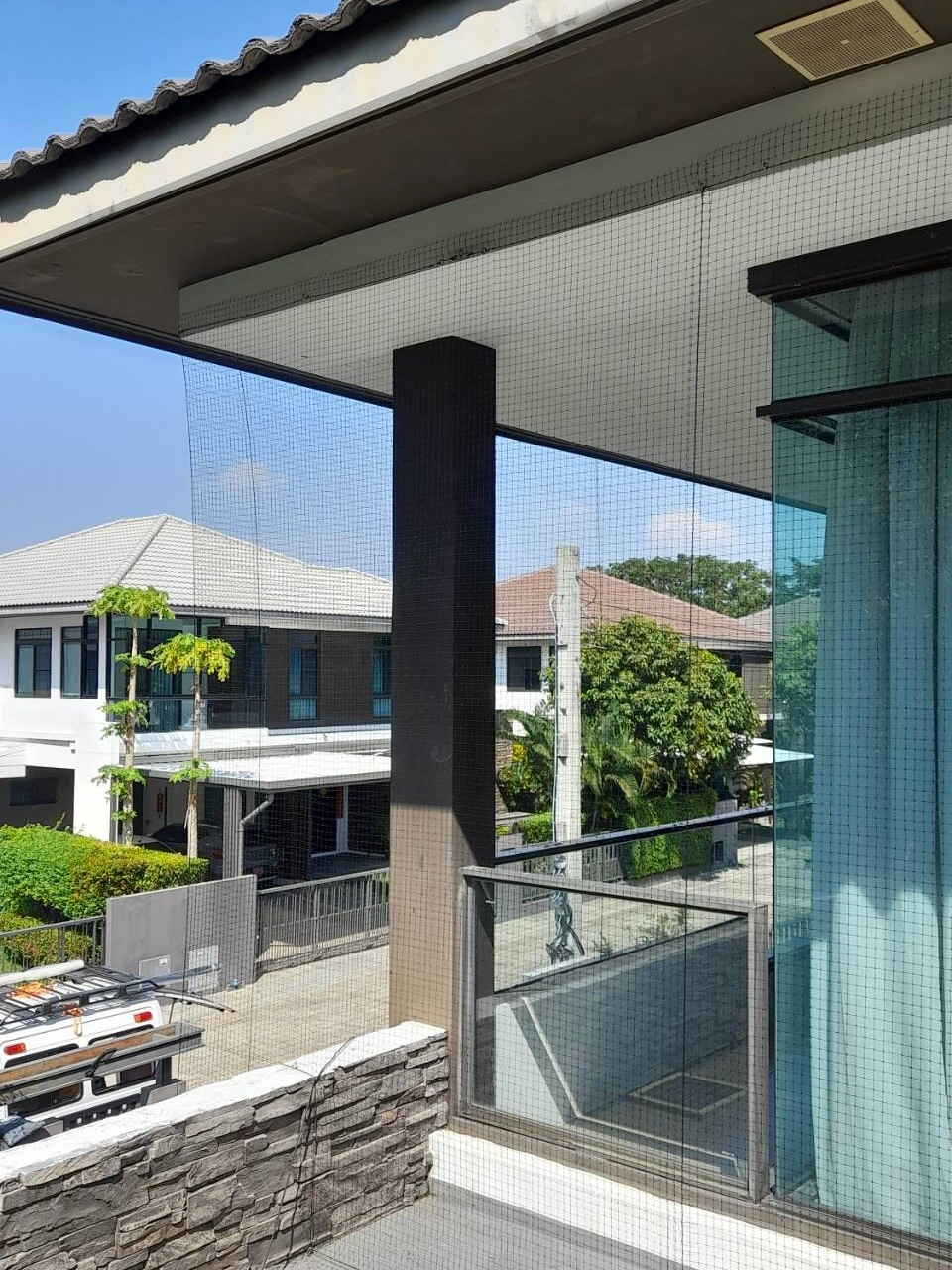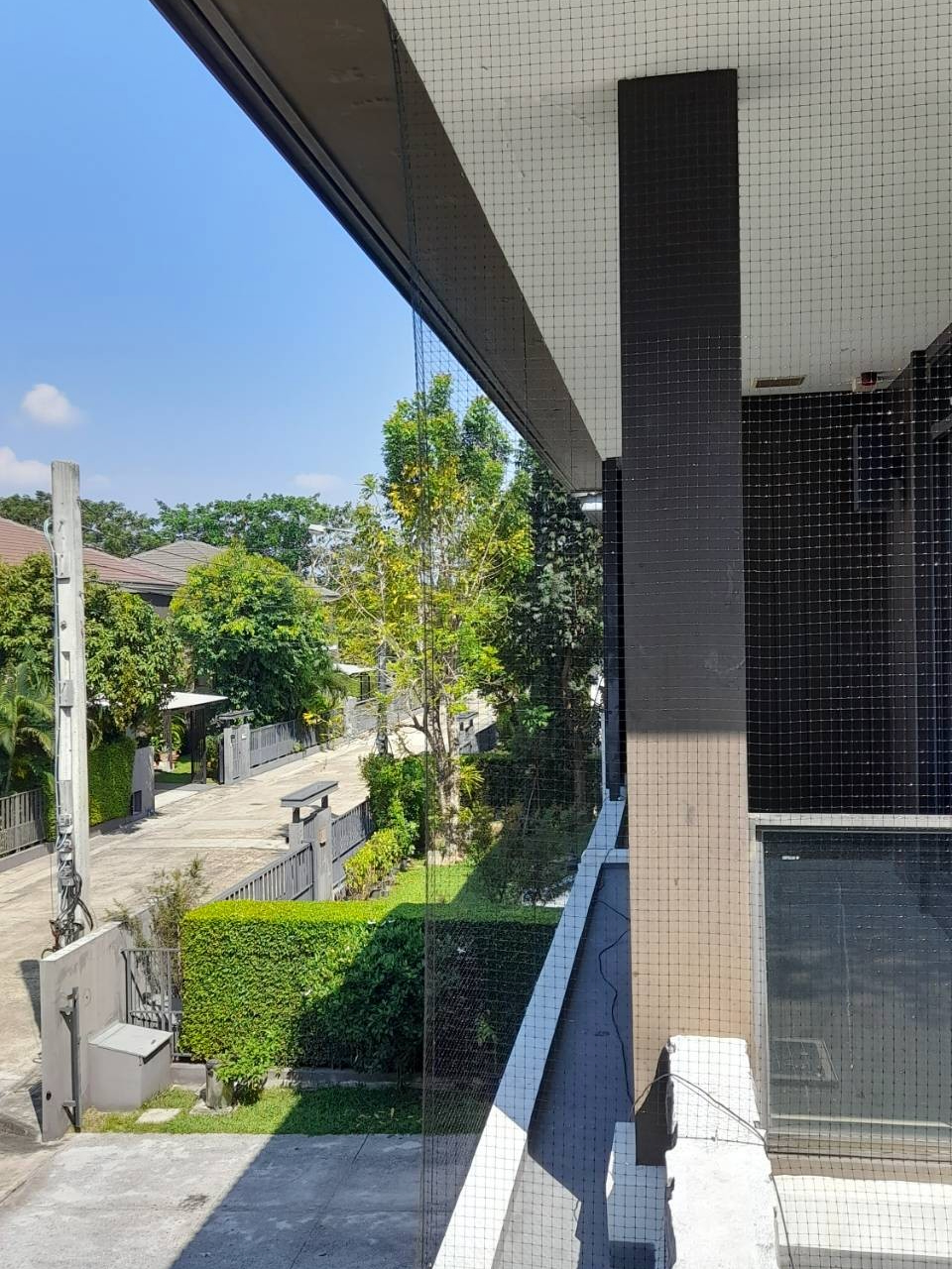 ทีมงานปฏิบัติงานอย่างรอบคอบ วางแนวตาข่ายให้ตึงเรียบและแนบกับโครงสร้างเดิม โดยไม่กระทบต่อความสวยงามของบ้าน พร้อมตรวจสอบความมั่นคงของจุดยึดทุกตำแหน่งก่อนส่งมอบ เพื่อให้มั่นใจในความแข็งแรงและการใช้งานระยะยาว