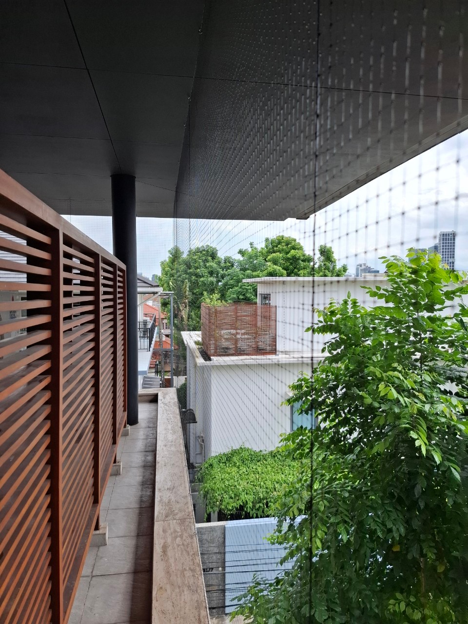 ผลงานติดตั้งครั้งนี้เลือกใช้ตาข่ายป้องกันนก (Bird Net) เพื่อปิดช่องเปิดและพื้นที่ที่นกสามารถบินผ่านเข้าไปอาศัยได้ โดยออกแบบแนวตาข่ายให้เหมาะสมกับโครงสร้างของบ้านในแต่ละจุด พร้อมติดตั้งอย่างเรียบร้อย แนบกับโครงสร้างเดิมโดยไม่กระทบต่อความสวยงามของตัวอาคาร