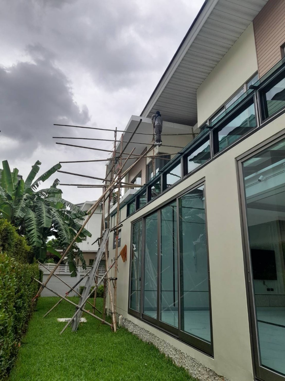 ทีมงานมีทรัพย์ 888 มีประสบการณ์กับบ้านพักอาศัยระดับพรีเมียมที่ต้องการความละเอียดในการทำงาน ทั้งการใช้นั่งร้านที่ปลอดภัย การยึดขอบตาข่ายที่ไม่ทิ้งรอยเสียหายบนตัวบ้าน และการเก็บงานให้เรียบร้อยก่อนออกจากพื้นที่