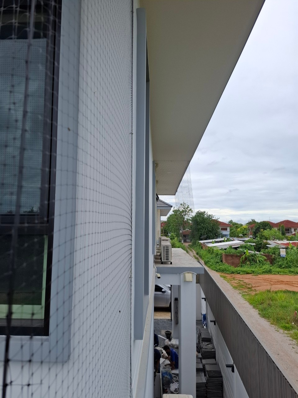 ทีมมีทรัพย์ 888 เข้าดำเนินการติดตั้ง ตาข่ายกันนกพิราบ ให้กับบ้านในโครงการมานาไพร์ม จังหวัดราชบุรี โดยครอบคลุมผนังด้านข้างทั้งแนวตั้ง ตั้งแต่ชายคาหลักลงมาถึงระดับหลังคาชั้นล่าง ครอบพื้นที่บริเวณหน้าต่างและช่องระบายอากาศที่นกมักใช้เป็นจุดพักและทำรังไว้ทั้งหมด