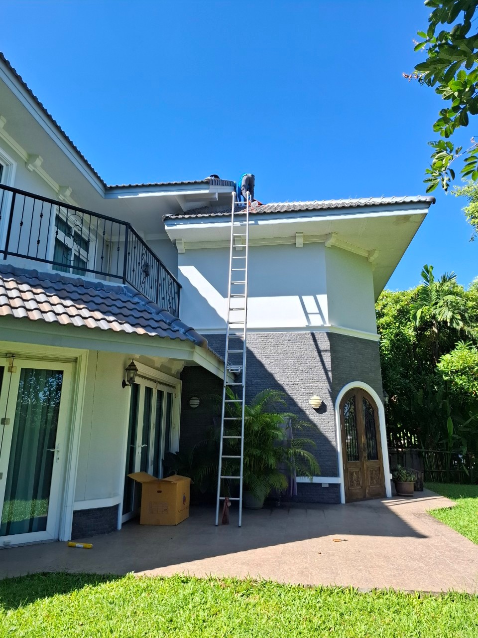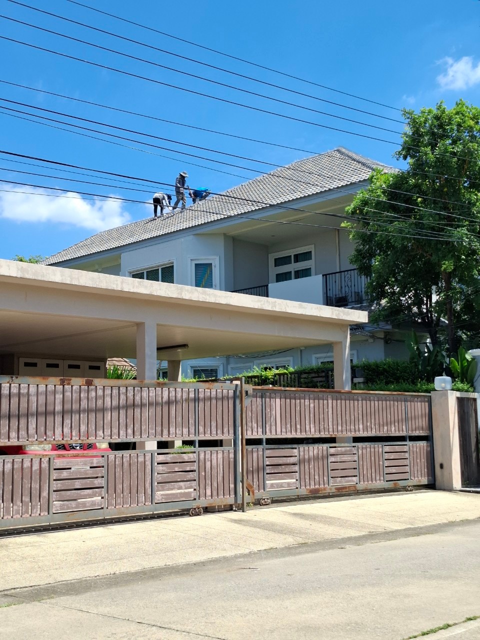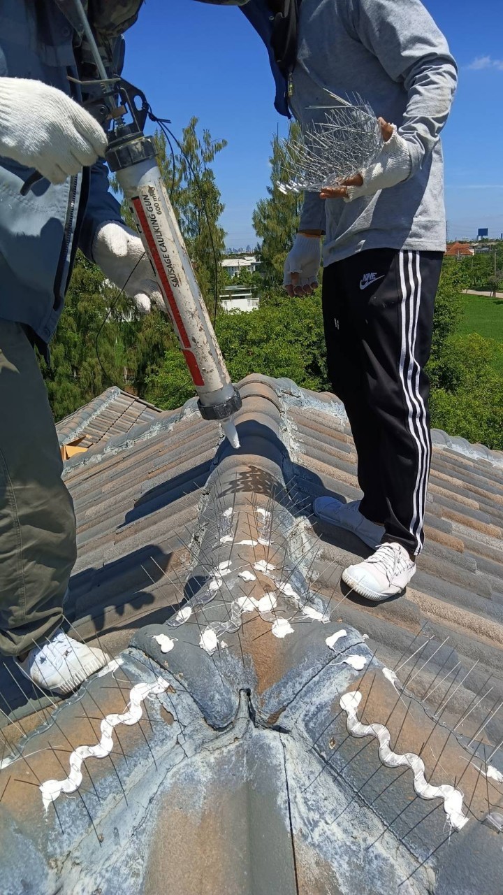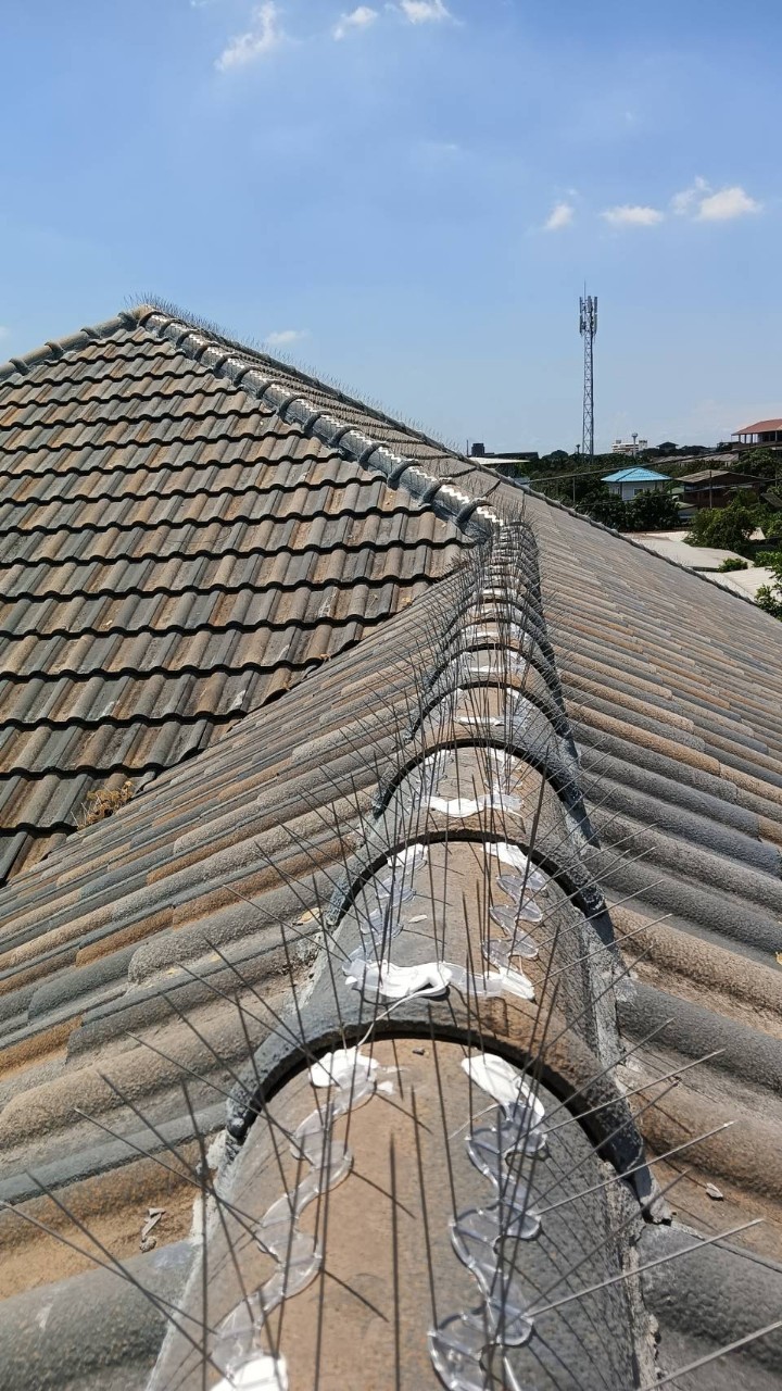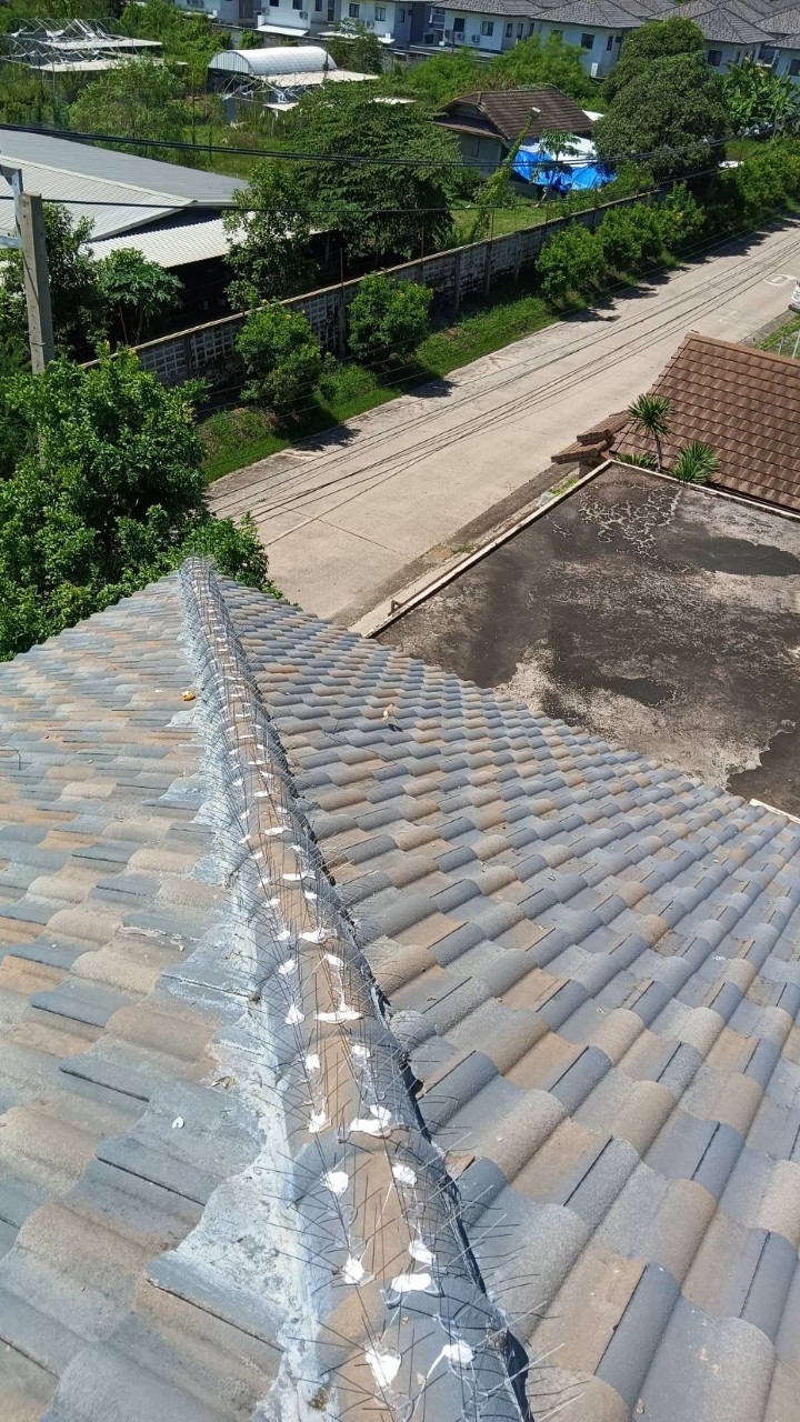 ทีมมีทรัพย์ 888 เข้าดำเนินการติดตั้งหนามกันนกให้กับบ้านในหมู่บ้านวินด์มิลล์พาร์ค ครอบคลุมสันหลังคาตลอดทุกแนว ทั้งสันหลักและสันเชิงชาย ทีมงานขึ้นหลังคาเพื่อวางแนวหนามให้ต่อเนื่องและแน่น โดยไม่เว้นช่องว่างตลอดเส้นสันทุกแนว