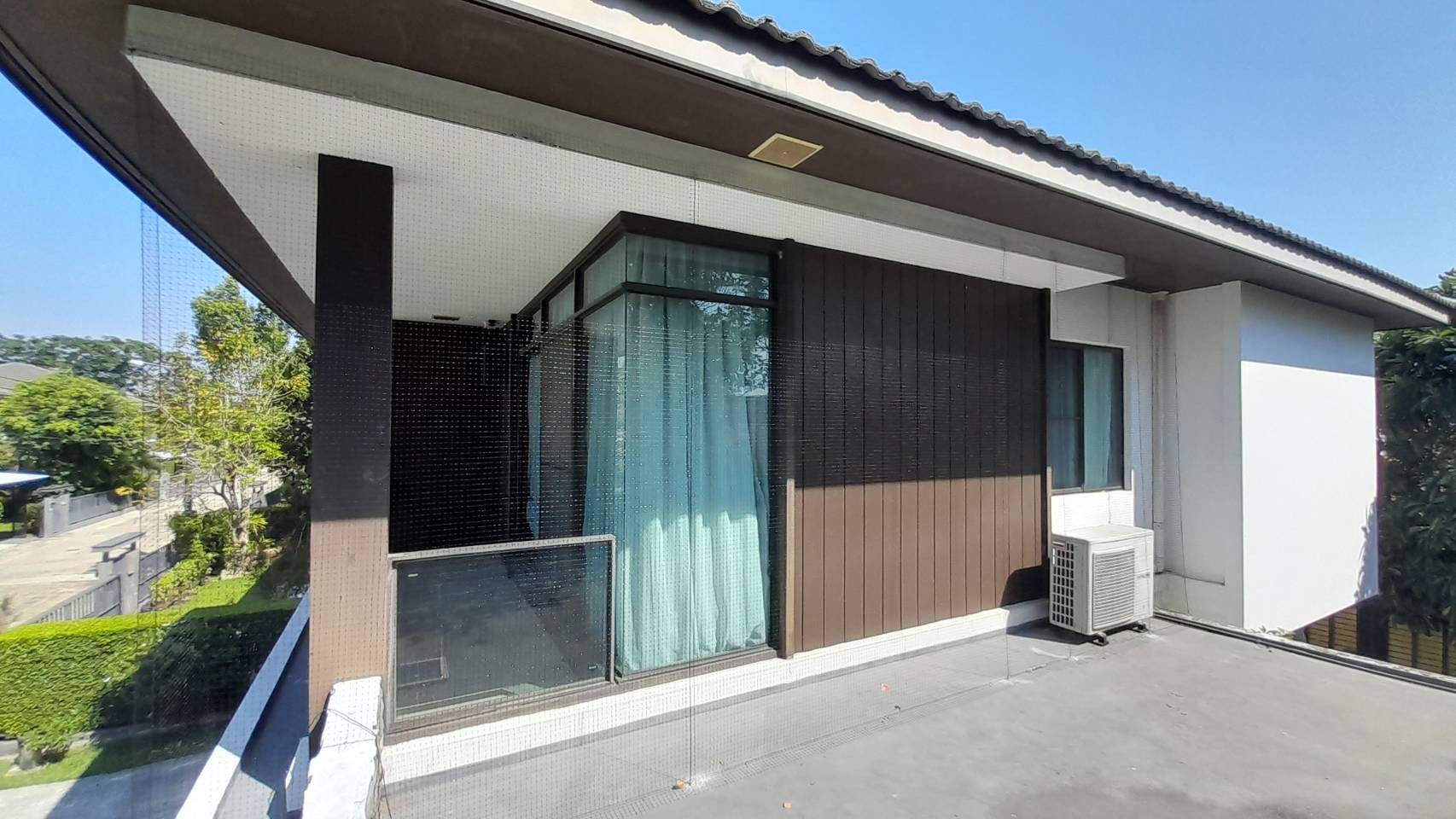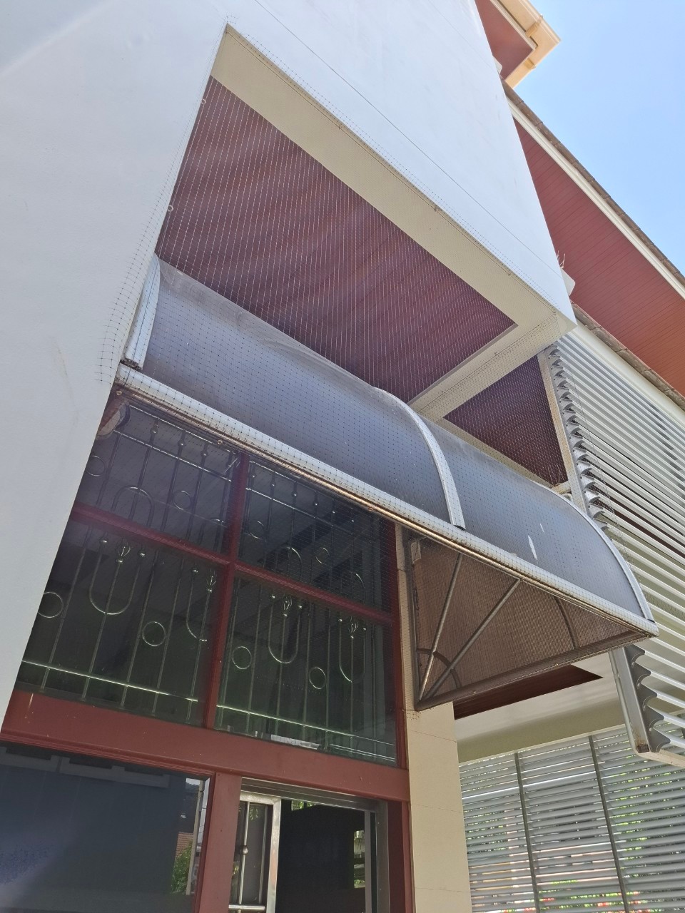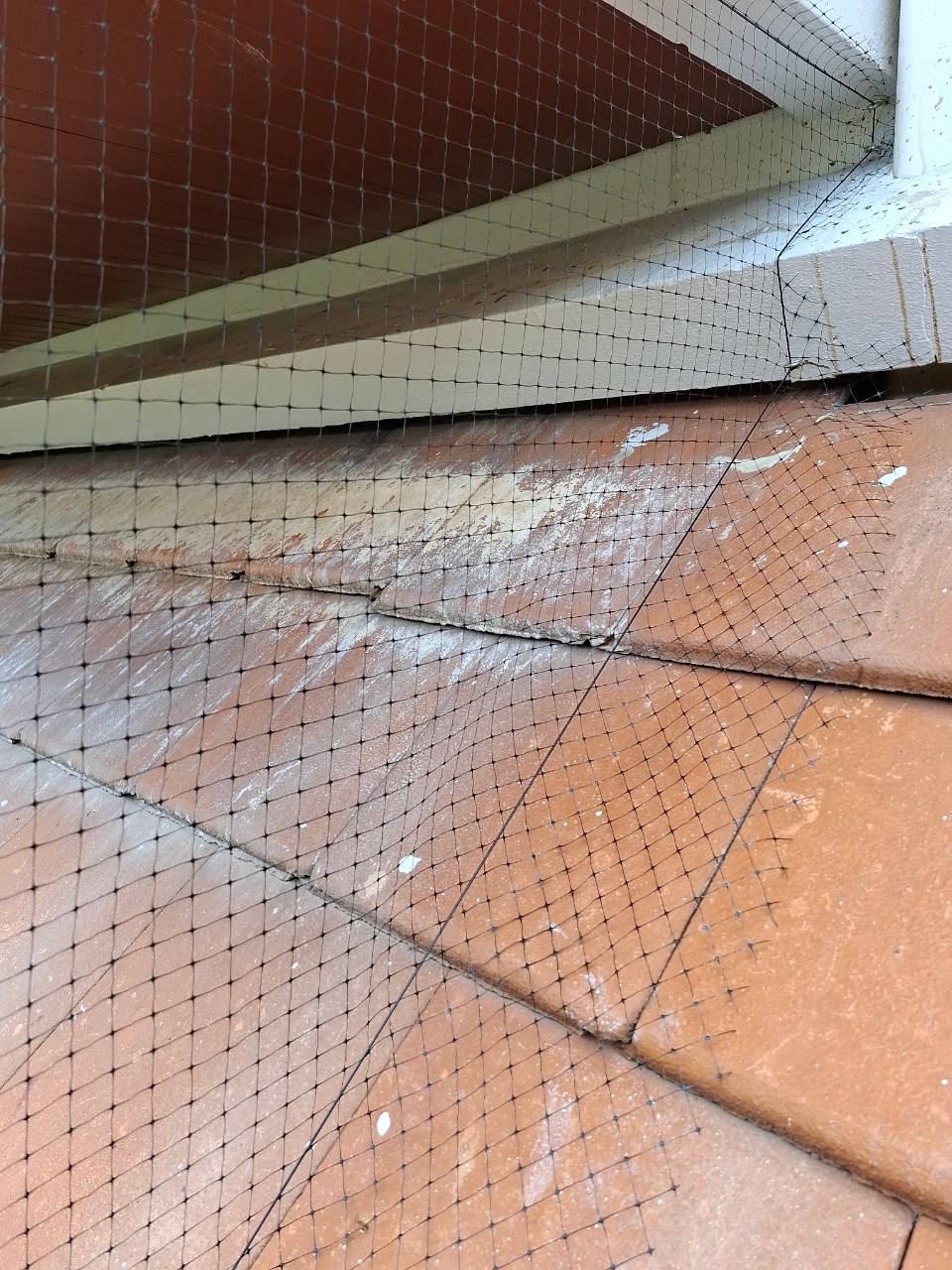 บ้านพักอาศัยสามชั้นที่มีหลังคาหลายส่วน หลายระดับ และชายคายาวรอบอาคาร ไม่ใช่งานง่ายสำหรับการกันนก เพราะนกพิราบจะหาจุดที่ไม่มีการป้องกันเสมอ หากปิดกั้นไม่ครบก็เหมือนไม่ได้ทำอะไรเลย