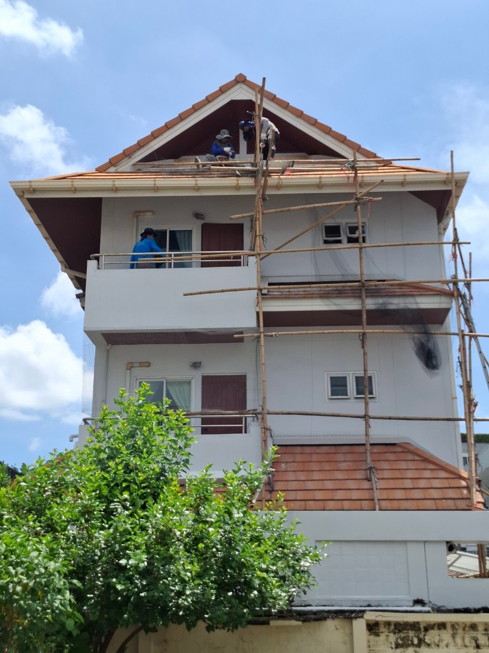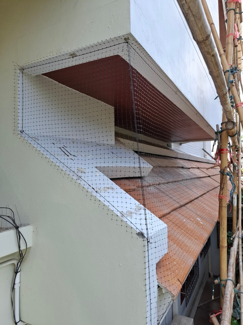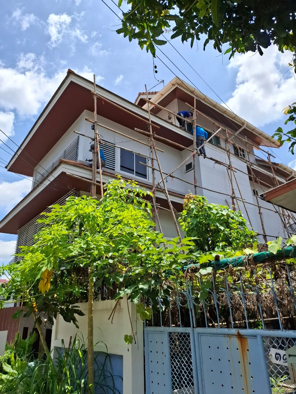 ทีมมีทรัพย์ 888 เข้าดำเนินการติดตั้งตาข่ายกันนกให้กับบ้านสามชั้นขนาดใหญ่ที่มีพื้นที่หลังคาและชายคาหลายส่วนทั้งชั้น 2 และชั้น 3 ทีมงานสำรวจและวัดพื้นที่อย่างละเอียดก่อนลงมือ และใช้นั่งร้านไม้ไผ่สำหรับการทำงานชั้นสามที่เกินระยะบันไดจะเข้าถึงได้